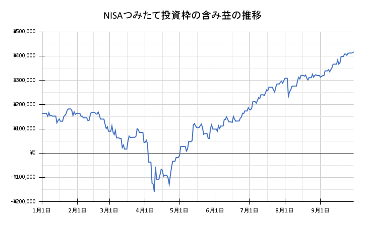 下が、つみたて投資枠の含み益の推移のグラフです。