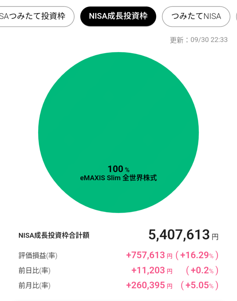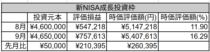 9月も変わらず成長投資枠に5万円投資しました。
