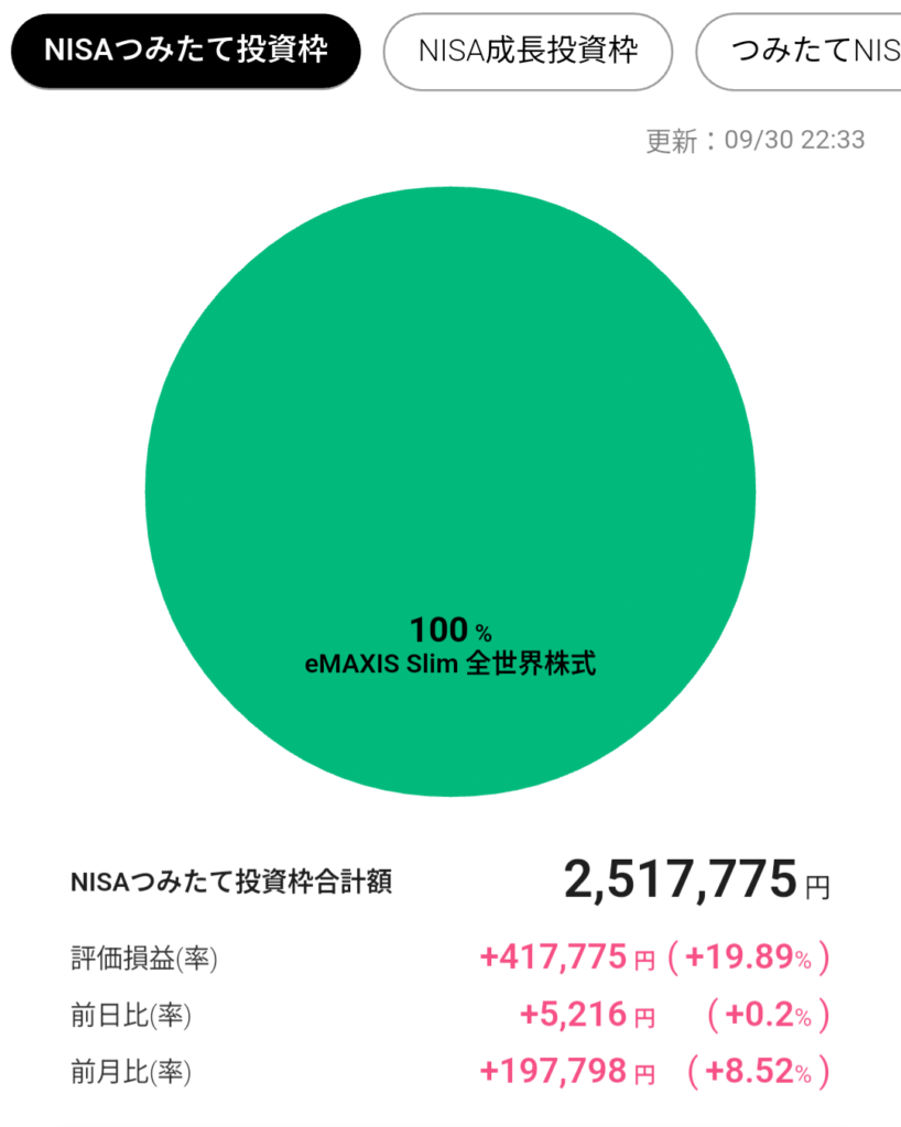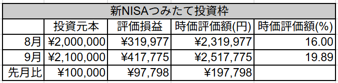 9月も変わらず、つみたて投資枠に10万投資しました。
