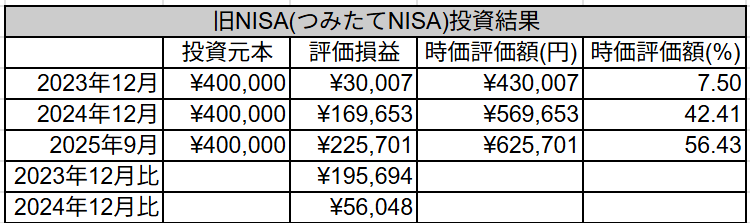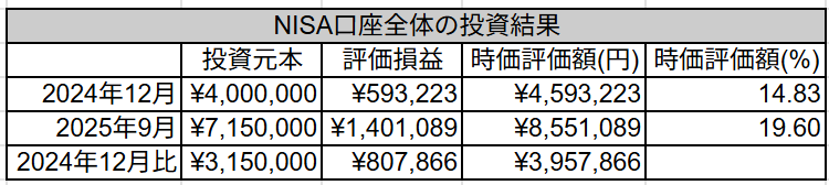 最後にNISA口座全体(旧NISAと新NISA)の結果を見ていきます。