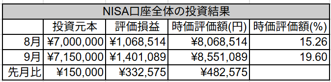 NISA口座全体の成績