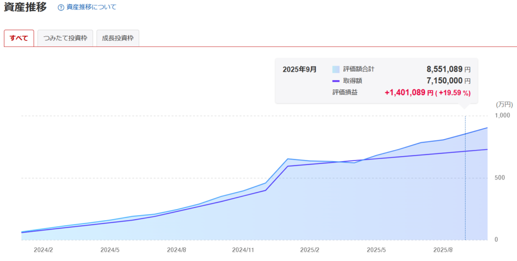 積立期間:2024年1月~2025年9月(1年9ヶ月)