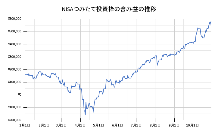 下が、つみたて投資枠の含み益の推移のグラフです。