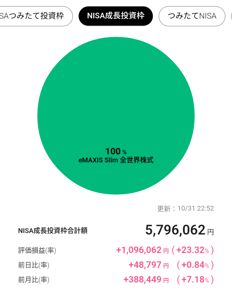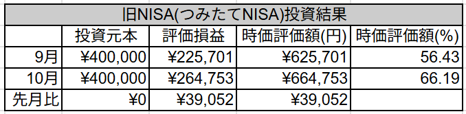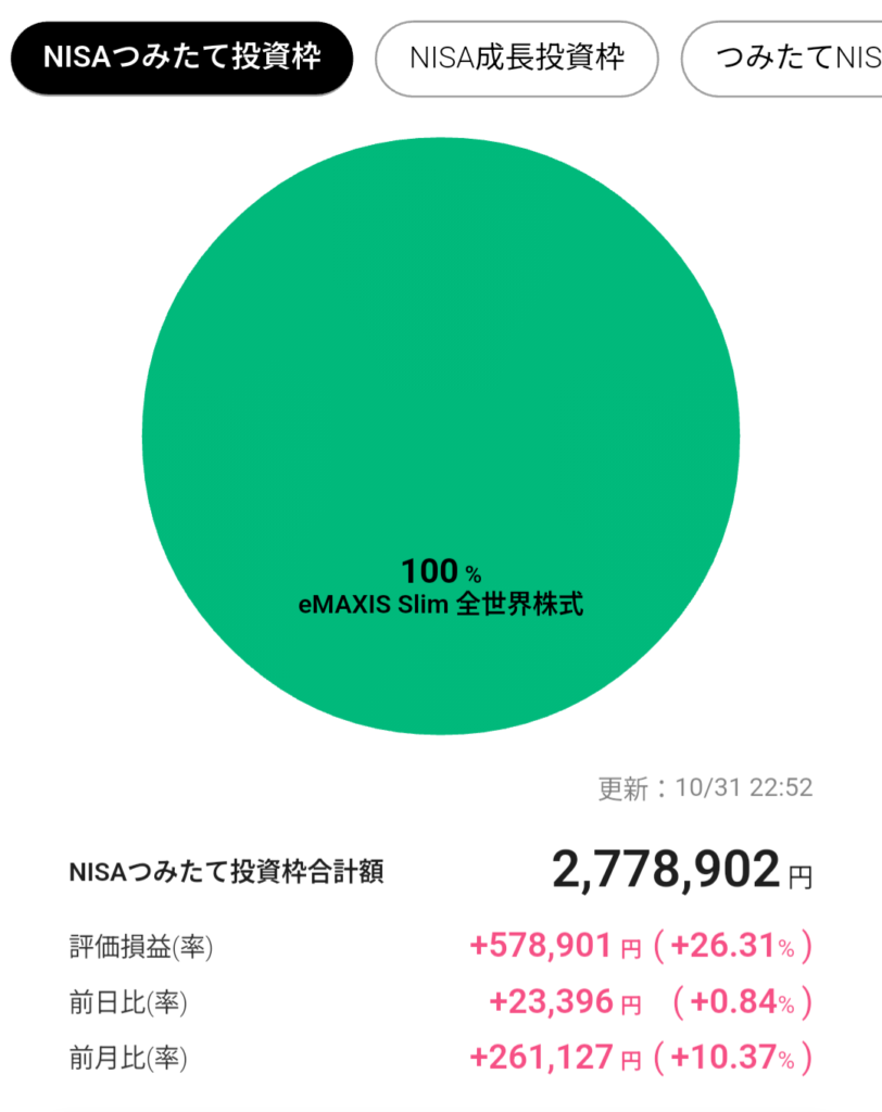 10月も変わらず、つみたて投資枠に10万投資しました。