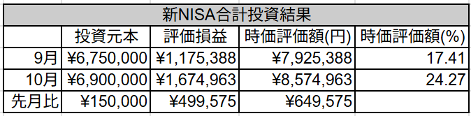 オルカン一択の新NISA690万円運用結果(1年10ヶ月 2025年10月)