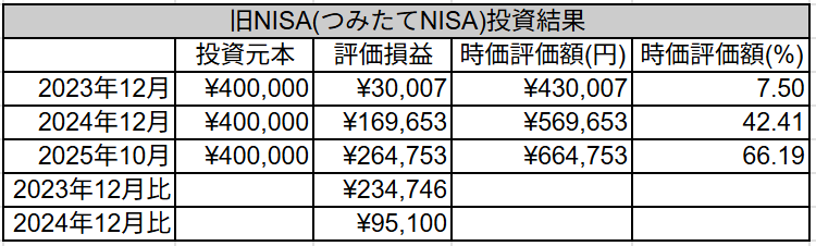 次は旧NISA(つみたてNISA)の運用(2年6ヶ月)結果を見ていきます。