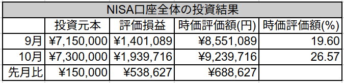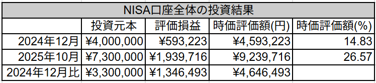 最後にNISA口座全体(旧NISAと新NISA)の結果を見ていきます。