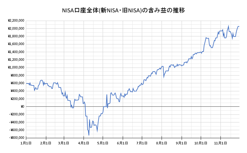 暴落時の4月の-80万円と比較すると、11月末の含み益が約178万円なので約7ヶ月で約250万円以上増えております。