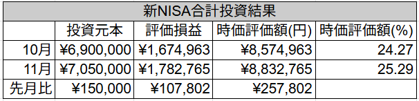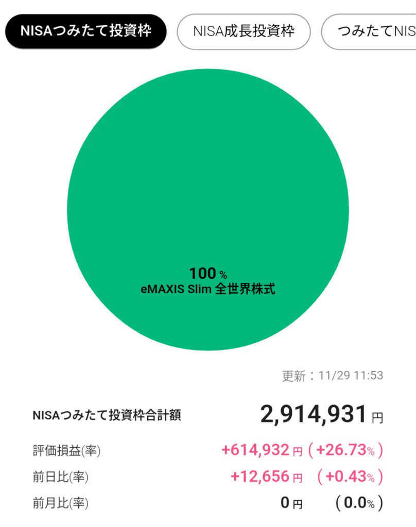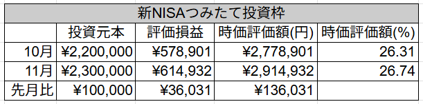 11月も変わらず、つみたて投資枠に10万投資しました。