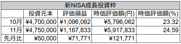 11月も変わらず成長投資枠に5万円積立投資しました。