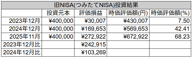 次は旧NISA(つみたてNISA)の運用(2年7ヶ月)結果を見ていきます。