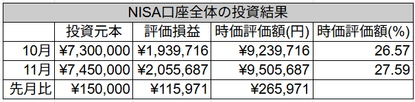 最後にNISA口座全体(旧NISAと新NISA)の結果を見ていきます。
