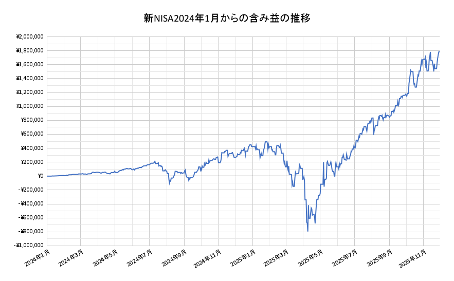 トランプ関税の暴落があり4月には含み益が-80万円近くまで下落しました。
