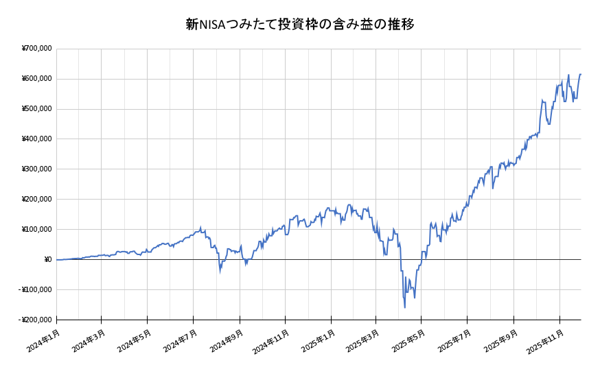 下が、つみたて投資枠の含み益の推移のグラフです。