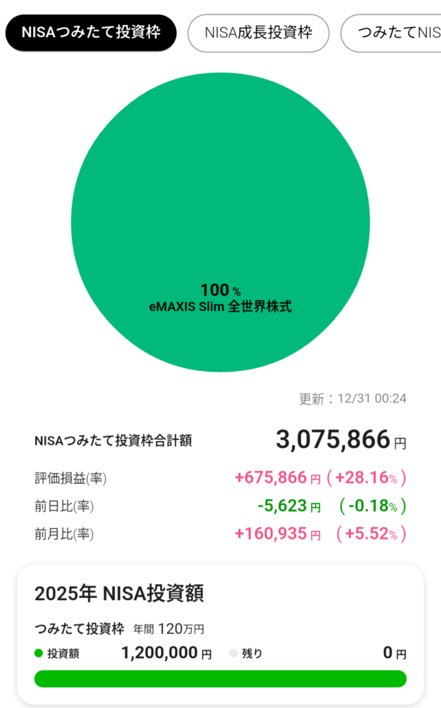 今年もどうにか積立投資枠の120万円を満額投資できました。