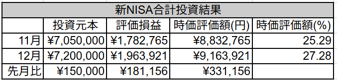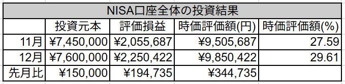 この記事では、まず12月のNISAの投資結果を紹介し、最後に凡人会社員の投資の目的と投資方針、心構えを紹介します。