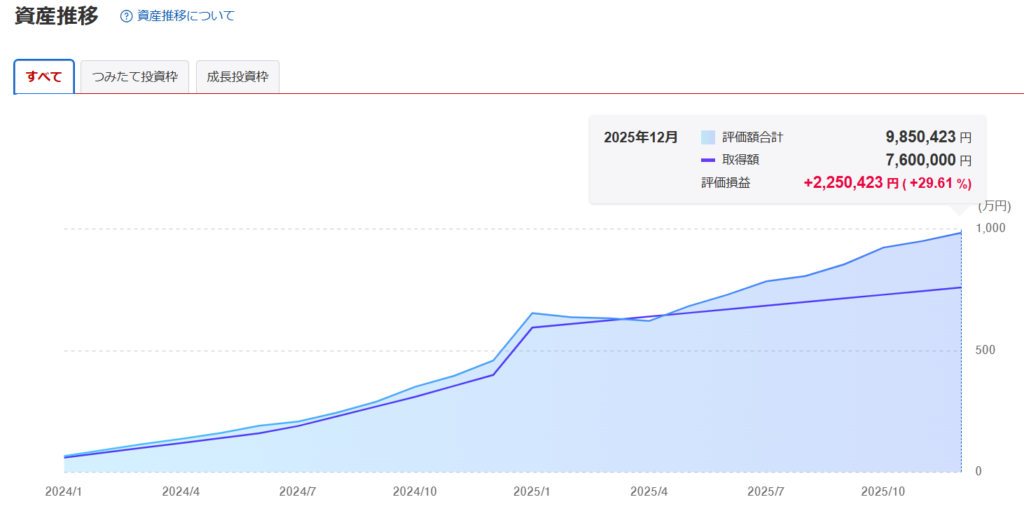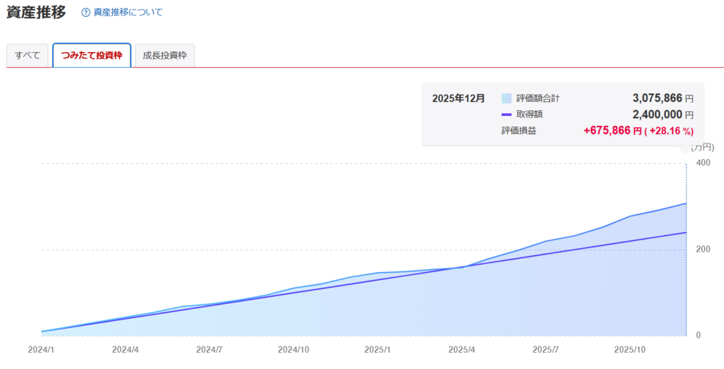 つみたて投資枠には2024年1月から毎月10万円を積立投資しております。