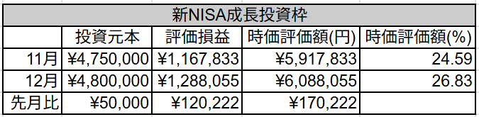 12月も変わらず成長投資枠に5万円積立投資しました。