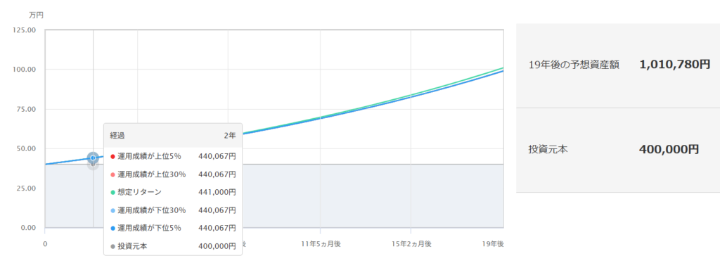 5%で運用した場合の2年時点の想定リターンが441,000円になります。