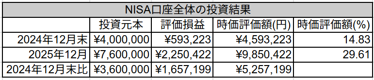 最後にNISA口座全体(旧NISAと新NISA)の結果を見ていきます。