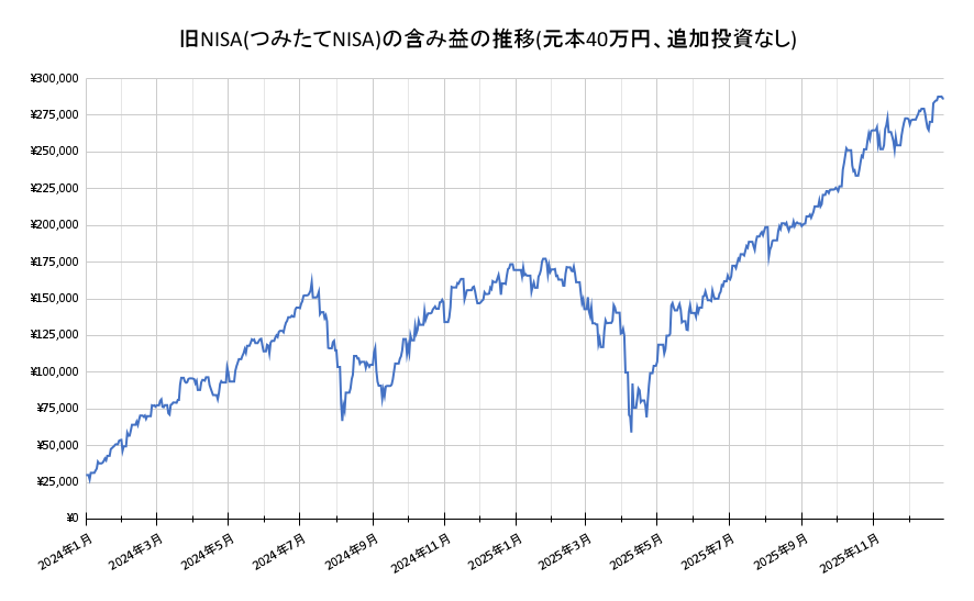 40万円を追加投資することなく2024年から2年放置してただけで25万円のプラス。