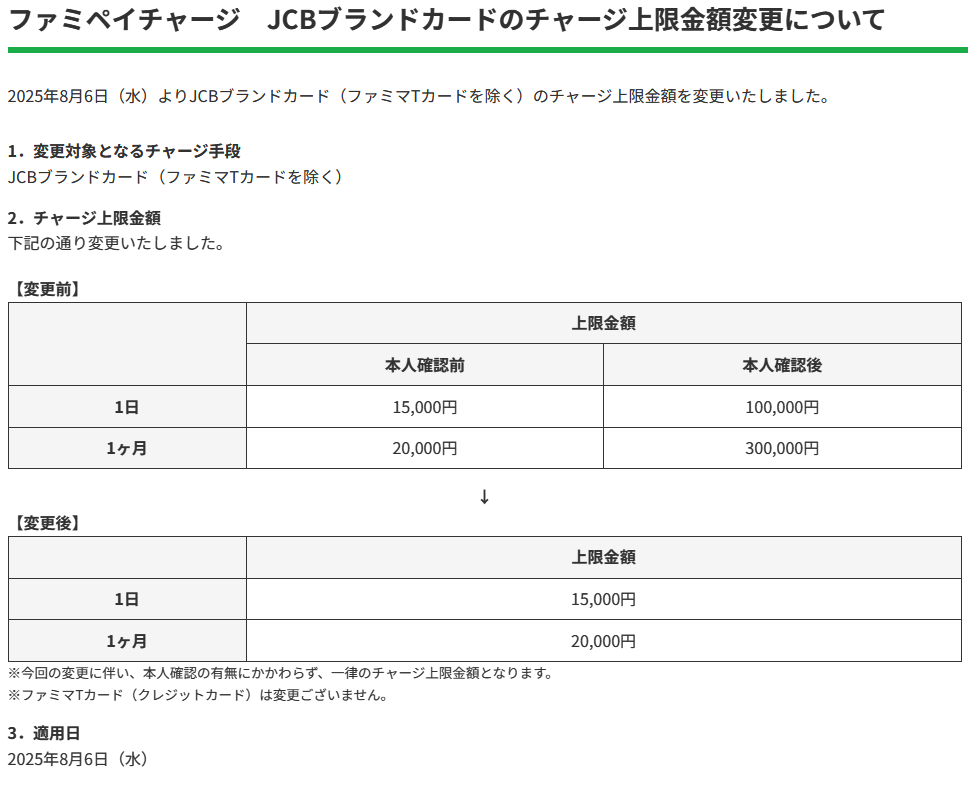 ただ、残念なことに8月にファミペイへのチャージ金額の上限が月2万円までに変更になりました。