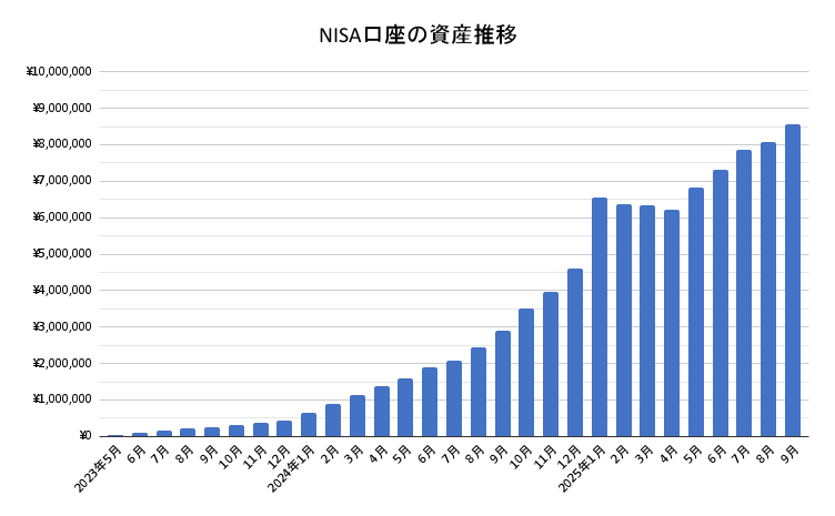 NISA口座の資産推移が下のグラフになります。
