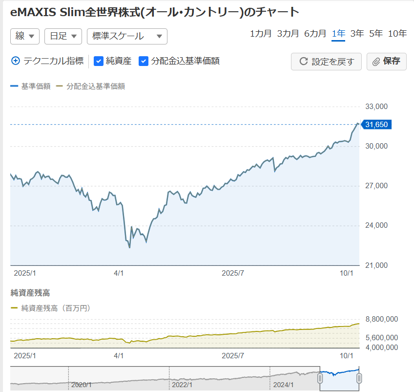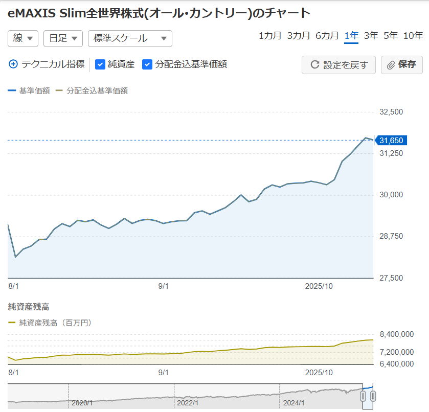 保有商品はeMAXIS Slim 全世界株式(オール・カントリー)の一択になります。