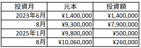 投資月と元本が下の表になります。