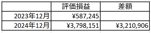 評価損益が2023年12月末から2024年12月までで6倍以上になっております。