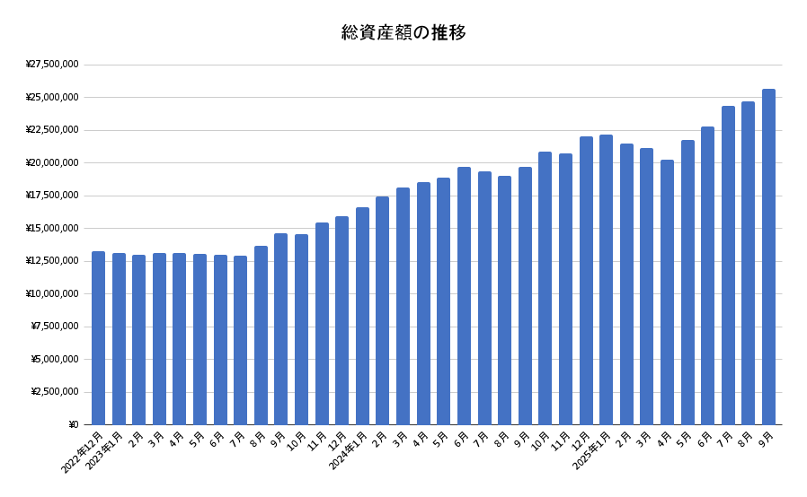 2025年9月末の総資産額は25,690,565円でした。
