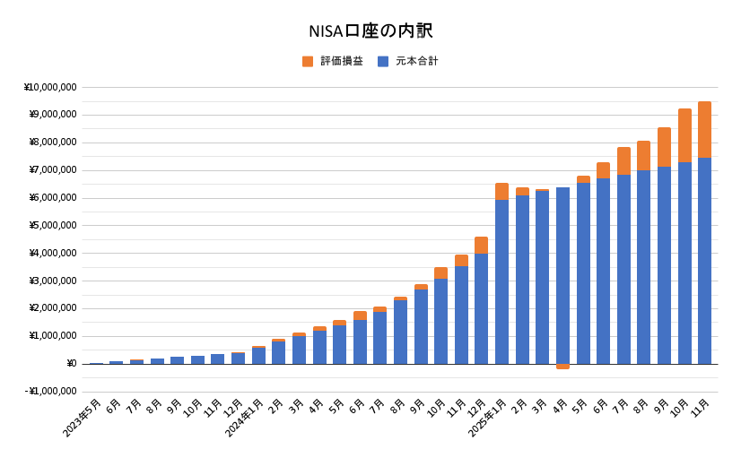 2025年は新NISAに年初に180万円を投資して1月~12月に毎月15万円を積立投資しております。