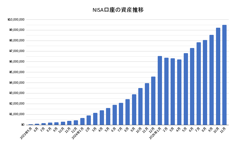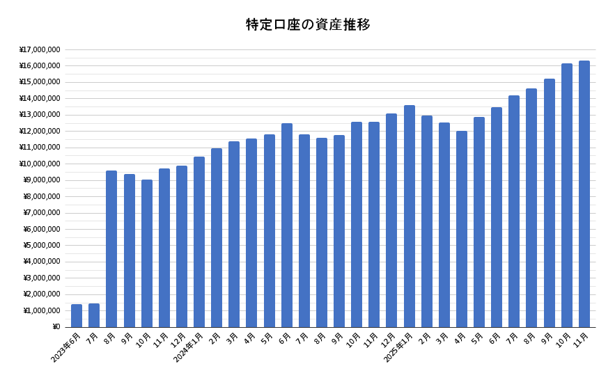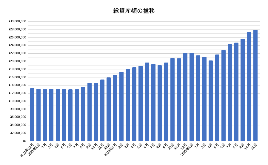 資産形成を意識し出した2022年12月からの総資産額の推移が下のグラフになります。