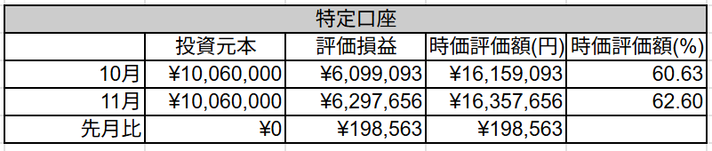 11月13日に基準価額が最高値の32,708円までいきましたが、その後は下落して月末には最高値までは行きませんでいたが月初めよりは高い値で終わりました。