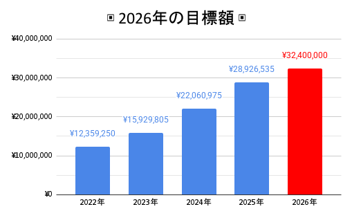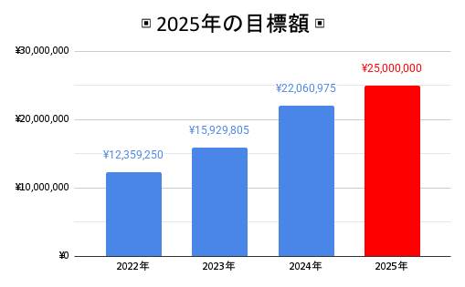 2025年の目標額2500万円を大きく超える2892万円と目標より400万円近くプラスで終えました。