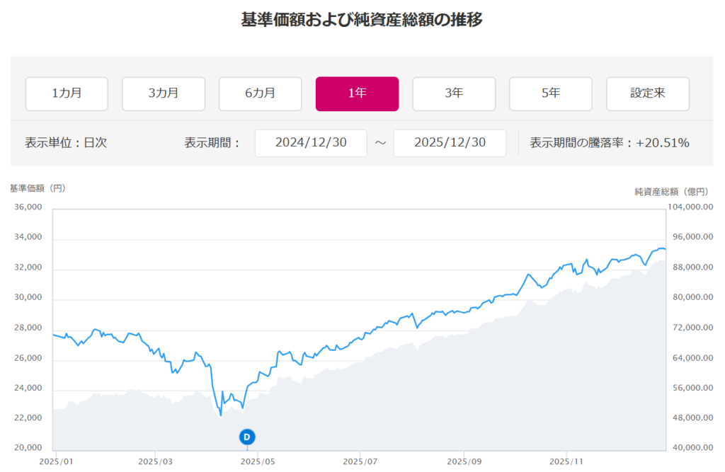 下はオルカンの12月の基準価額および純資産総額の推移になります。