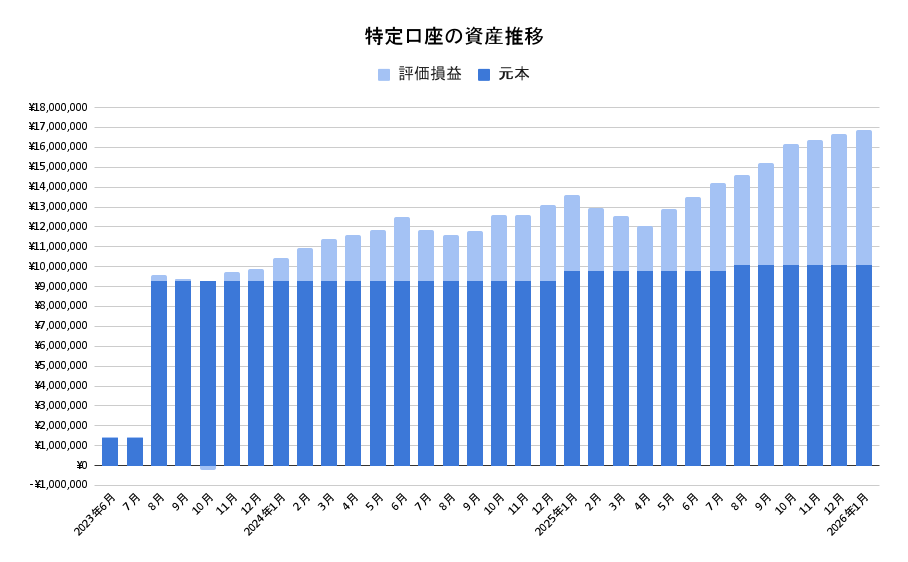 資産形成を意識し出した2022年12月からの総資産額の推移が下のグラフになります。