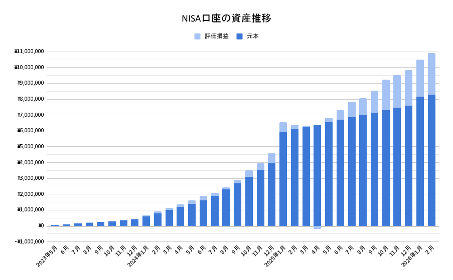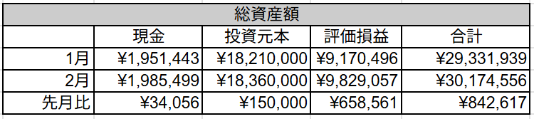 元ニートの投資初心者、凡人会社員の総資産額、オルカン投資の資産形成(2026年2月)