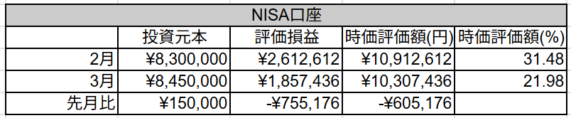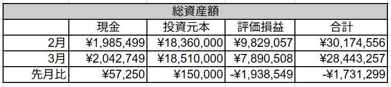 先月3000万円に到達しましたが、中東情勢の悪化の影響で大幅に資産が減少しました。